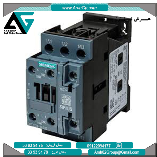 کنتاکتور 11 کیلو وات 25 آمپر زیمنس، 3پل 24 ولت DC ، دارای ترمینال های پیچی
